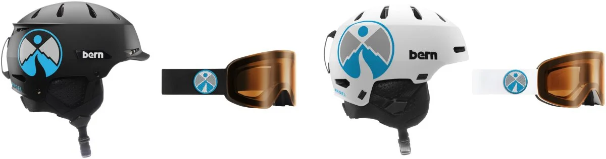 Bern Hendrix and Macon Winter Helmets and Goggles with Snow Angel Foundation Branding